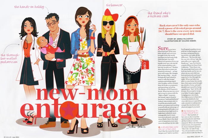 Le groupe US Parenting édite aussi le magazine Babytalk, destiné aux jeunes parents. J'ai été contacté par la directrice artistique pour créer une illustration sur le sujet des jeunes mères et de leur entourage. On y retrouve tout l'éco-système, le bon et le mauvais, dans lequel évolue les jeunes mères américaines. La famille bien-sûr, mais aussi les amis, le corps médical, les collègues, etc...